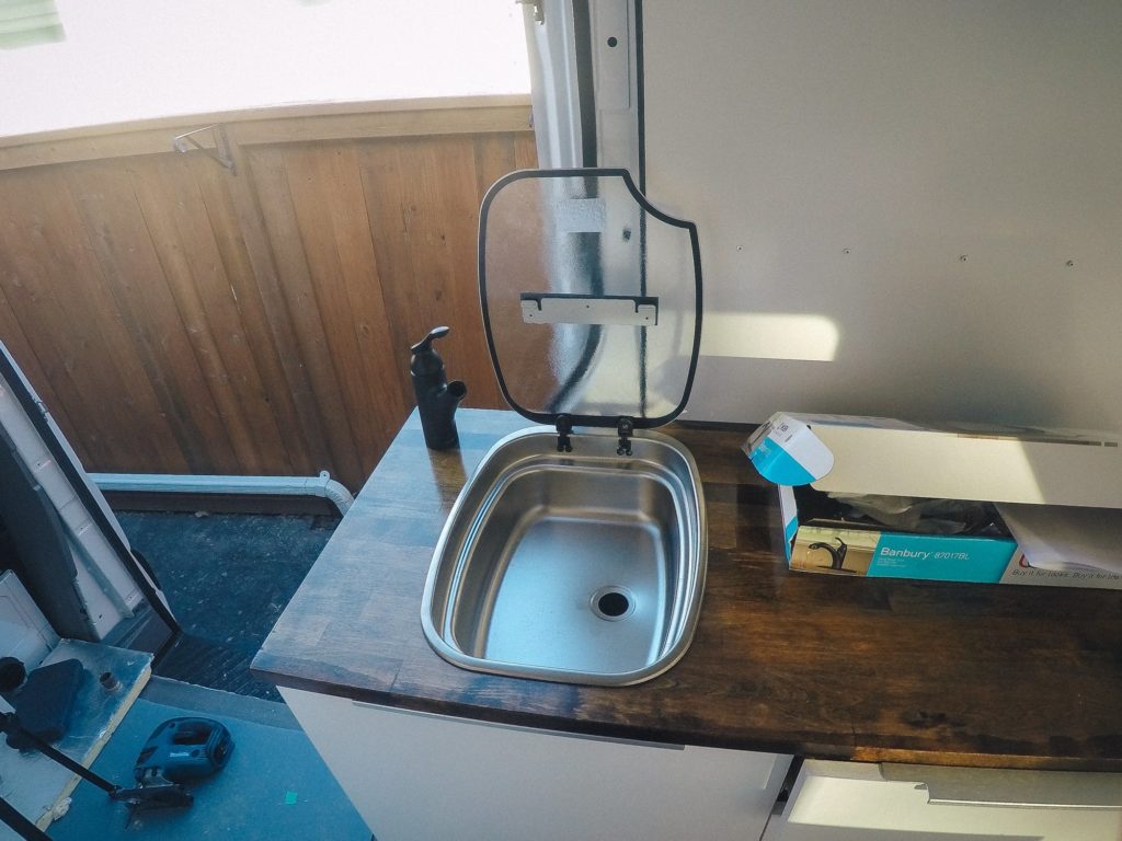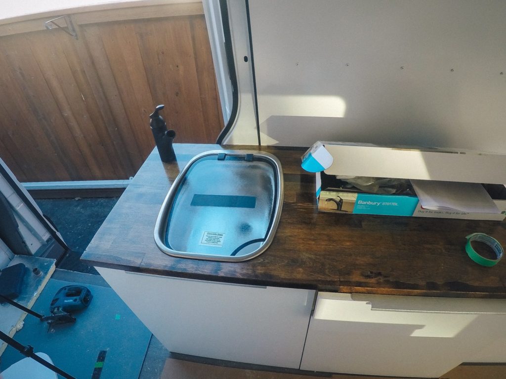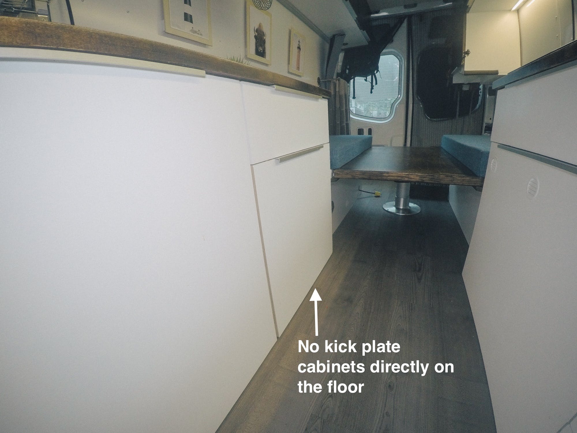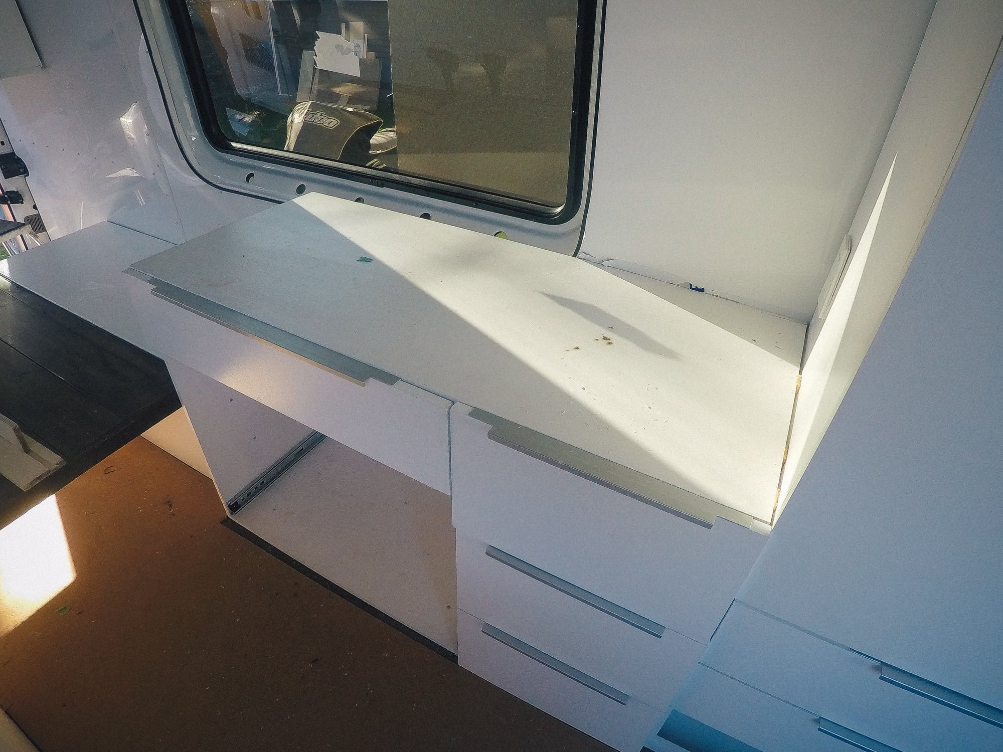 As I built the bottom counter units I didn’t worry about the curve of the van and built them with square backs. It saved a ton of time and hasn’t affected anything in the van.