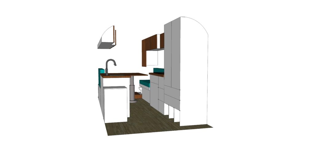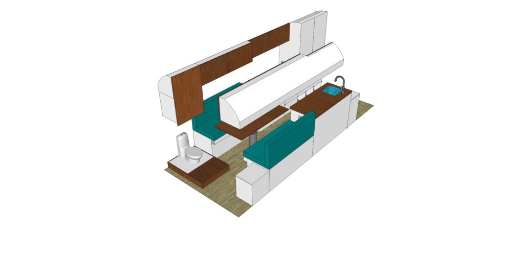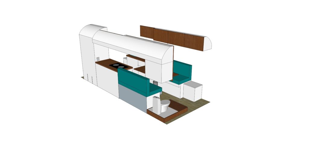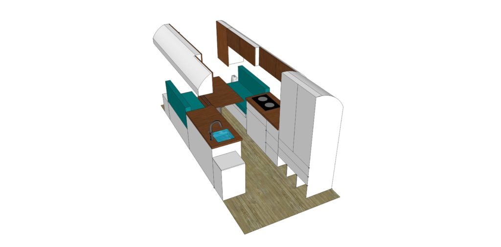 Before you actually start cutting the cabinets, it’s a good idea to map everything out inside the van and to get a rough idea of how everything will fit together. I had seen other people that had used a 3D Modelling Program called Sketch.