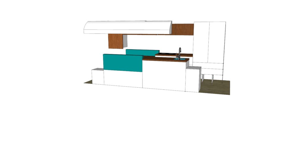I found SketchUp to be fairly easy to use. The program allowed me to create a rough outline of the van as well as a guide for building the cabinets inside the space. Once I had designed the layout inside SketchUp, the design changed very little from that original 3D design to what you see today inside the van.