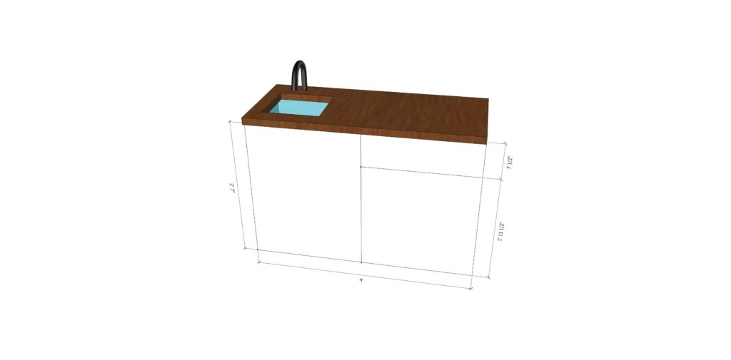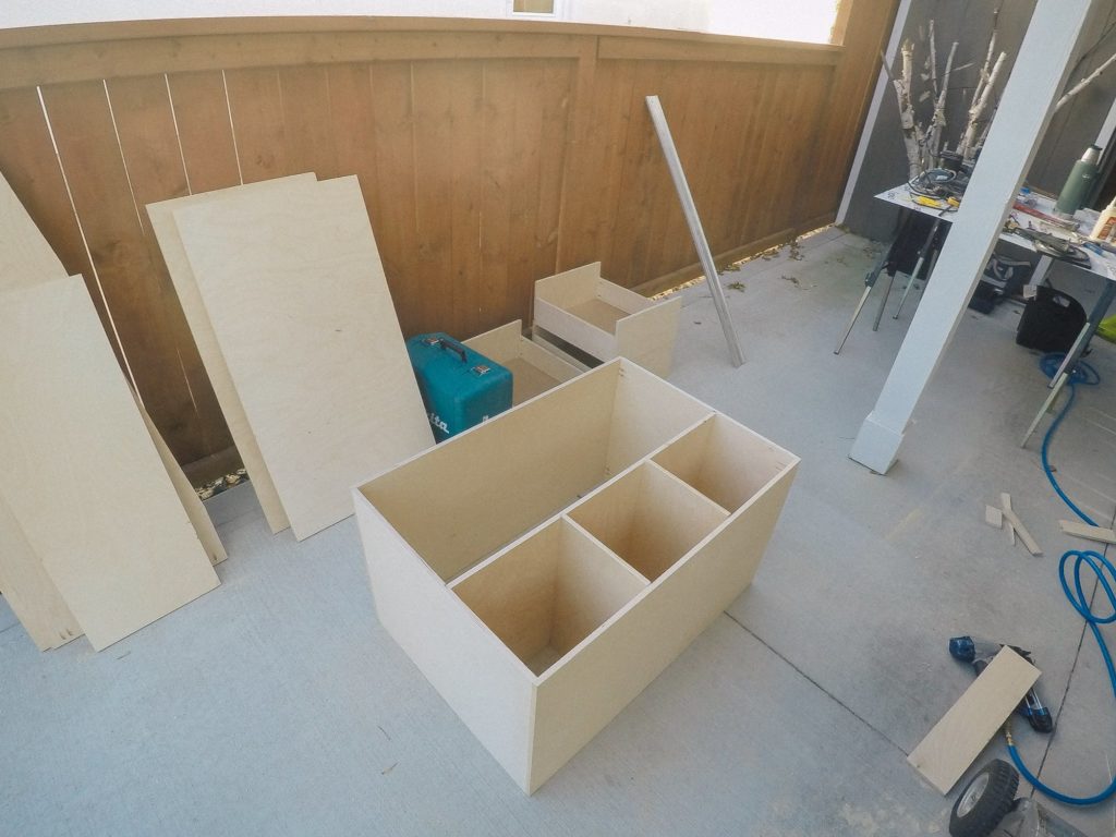 After I built the bench boxes, the next easiest pieces to build were the Kitchen counter pieces. The Kitchen counter pieces are made up of two boxes are that are identical in size and just have different door and drawer configurations.
