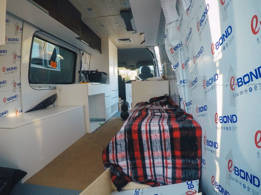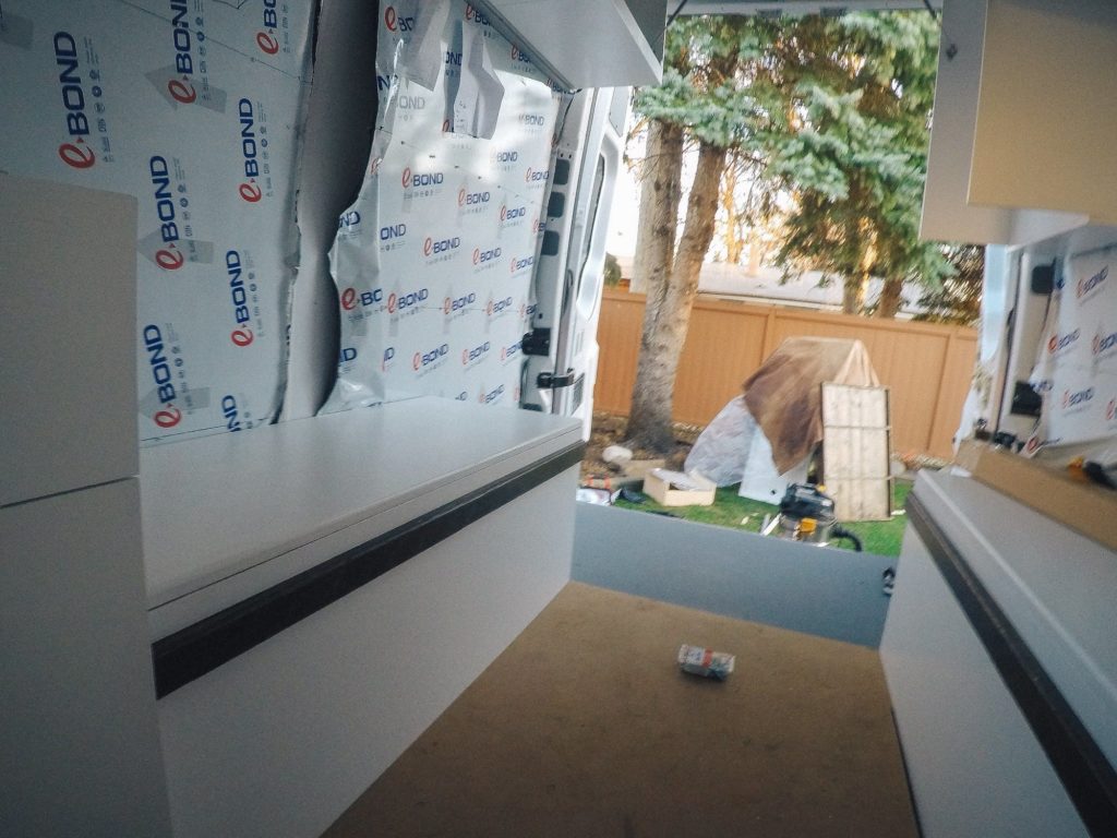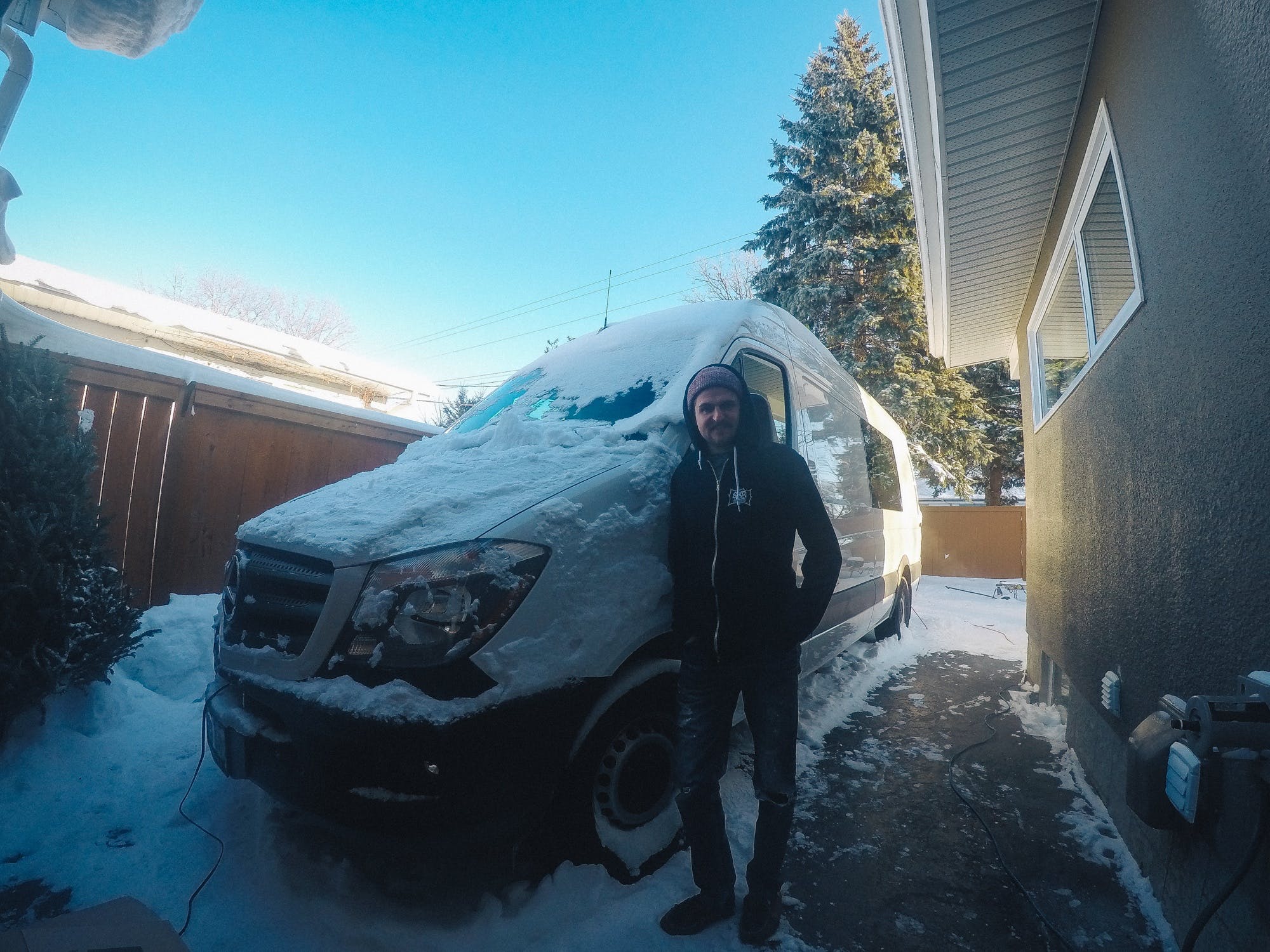 If you have been following along you will know that this build I thought was going to take 3 months… well that didn’t happen. So just based on the timing of when I got the van I wasn’t able to start till late fall and before I knew it I was working on the van in the middle of winter….outside…. Lots of snow…..