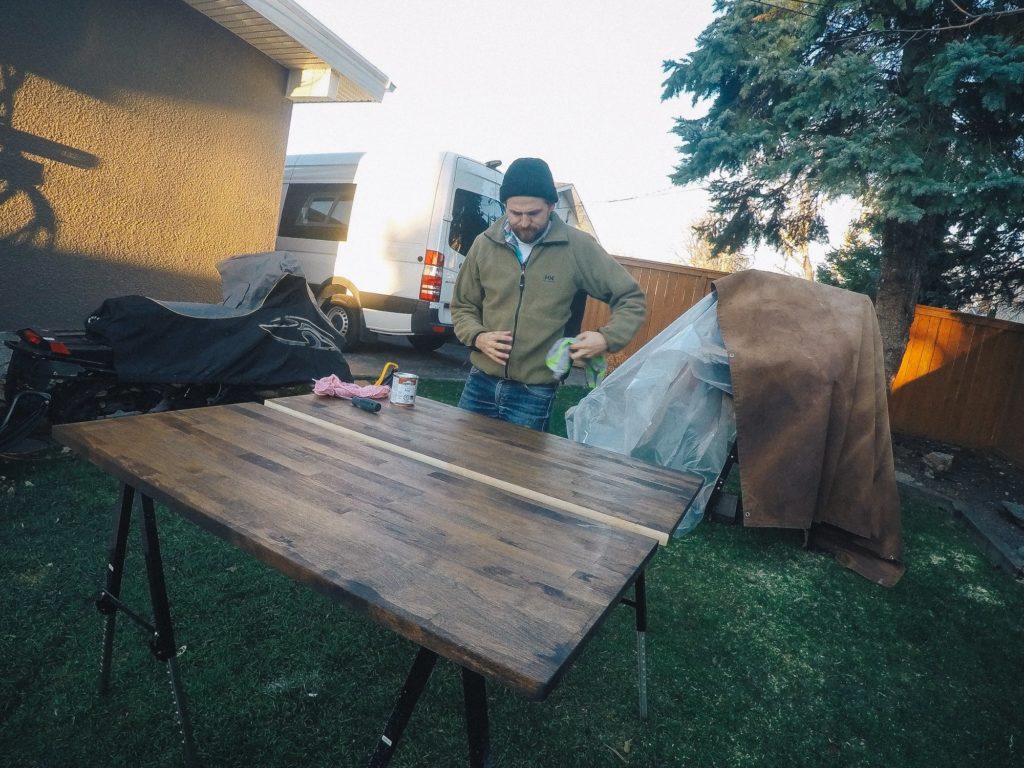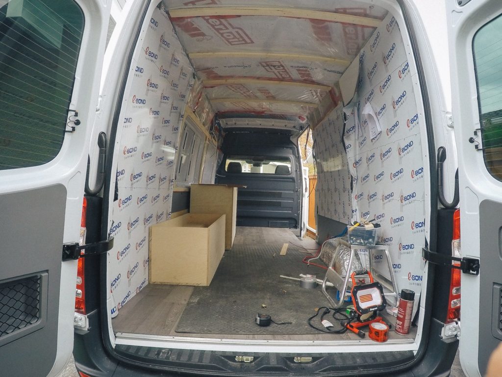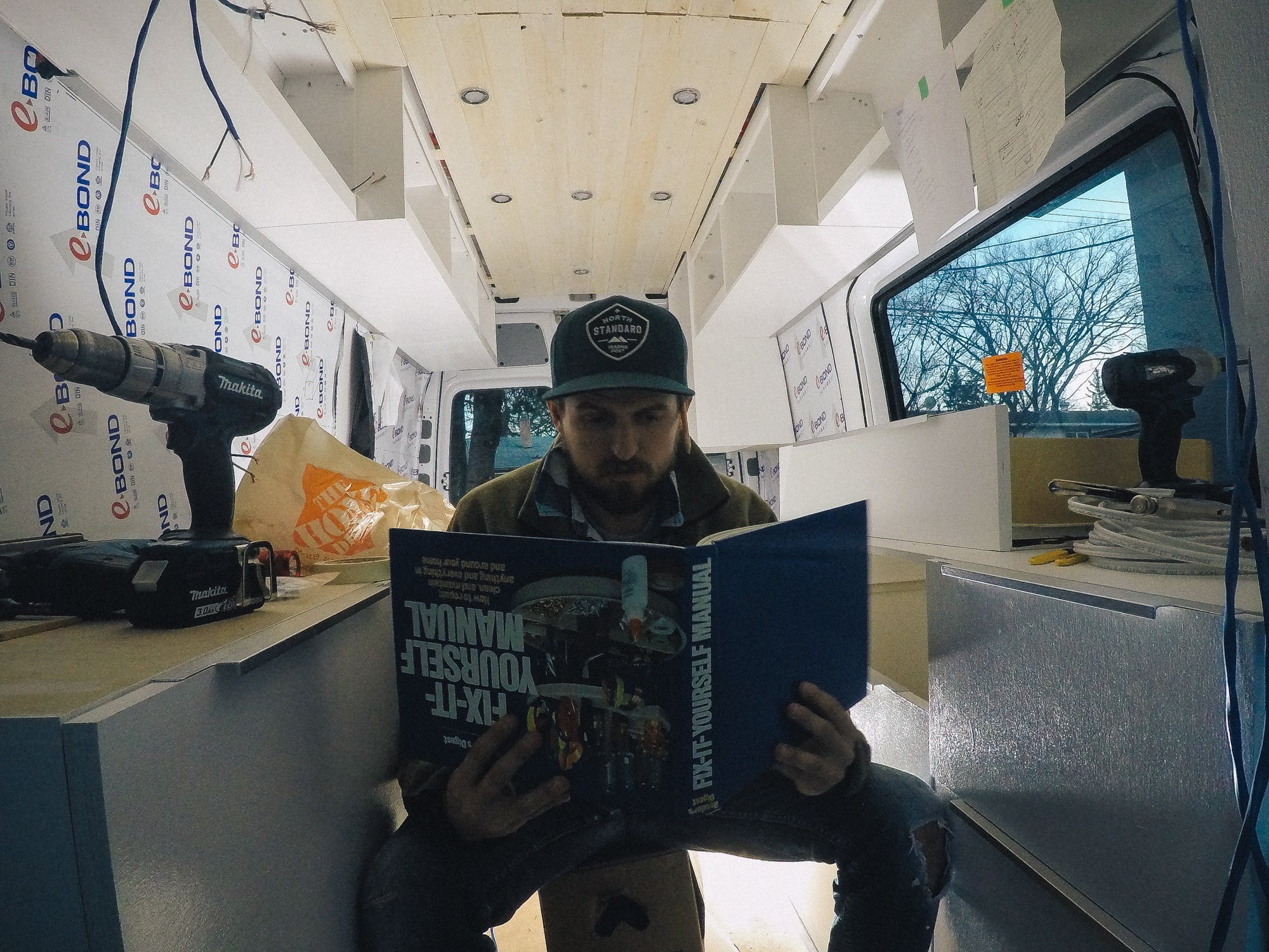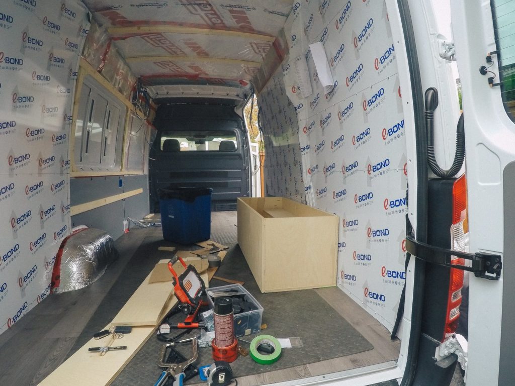 If you have been following along you will know that this build I thought was going to take 3 months… well that didn’t happen. So just based on the timing of when I got the van I wasn’t able to start till late fall and before I knew it I was working on the van in the middle of winter….outside…. Lots of snow…..