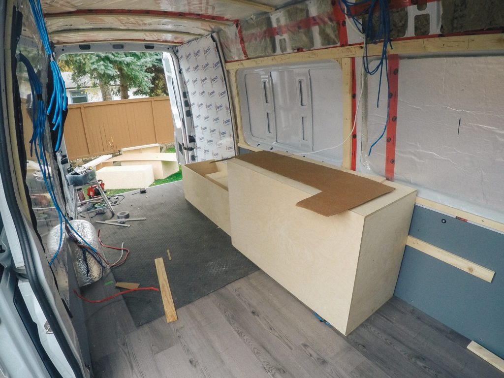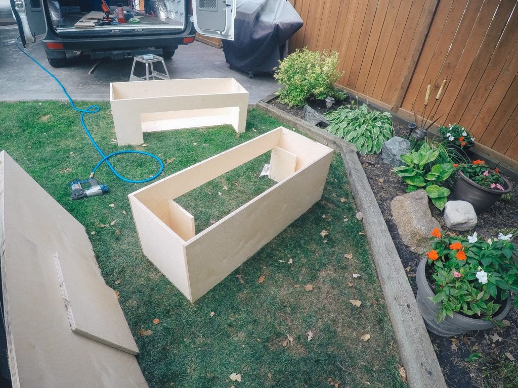 The first item I decided to build was the benches/bed section of the van. To me, this seemed like the simplest part of the cabinetry work and a good place for me to fine-tune my craft….