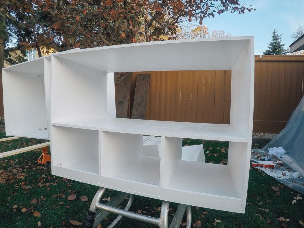 Building the cabinets was only half the battle… The painting, staining and sanding is what really seemed to take forever. Because I was working on the cabinet portion of the project in the fall it was really hard to find days that I could paint the cabinets.
