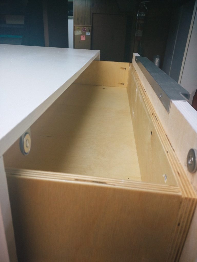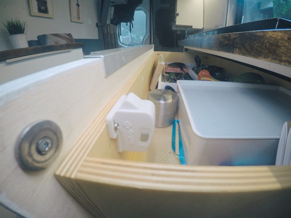 Once it is time to mount the cabinets in place be careful. I made the mistake of getting everything working perfectly outside of the van (drawers and doors) and then when I placed them inside the van and screwed everything in place I pulled everything out of square and none of the doors or drawers were working properly. So my quick tip especially when fastening the cabinets to the one beside the other you might need to shim things to avoid this problem.