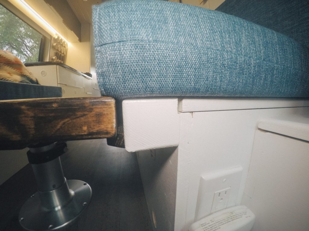 Building the bench was fairly straight forward and the only thing I needed to take into account was the wheel well in the vehicle. One thing I learned after I built the benches and lived in the van for the first 6 months was that I didn’t build the benches big enough…. Once I added the cushions to the bench it essentially shrunk the depth of the bench by 4 inches and made the benches pretty uncomfortable…. So I really recommend making sure you make your benches big enough, I was able to fairly easily fix my benches and it has made them 100x more comfortable. The current dimensions of my benches can be found below and now I am happy with the size of them.