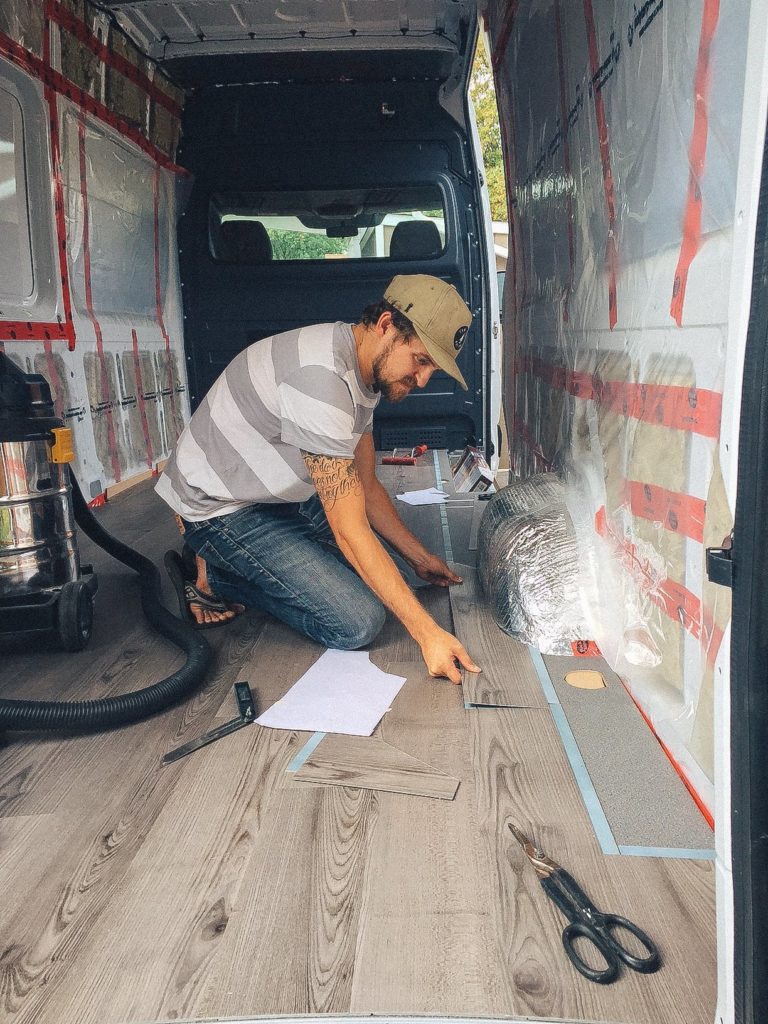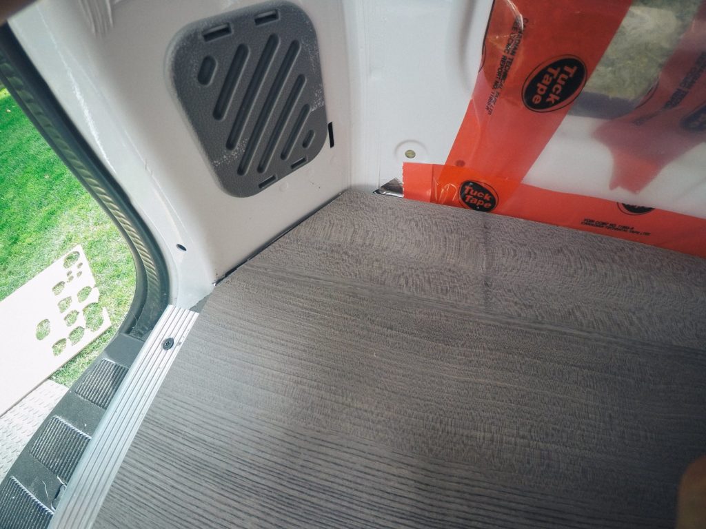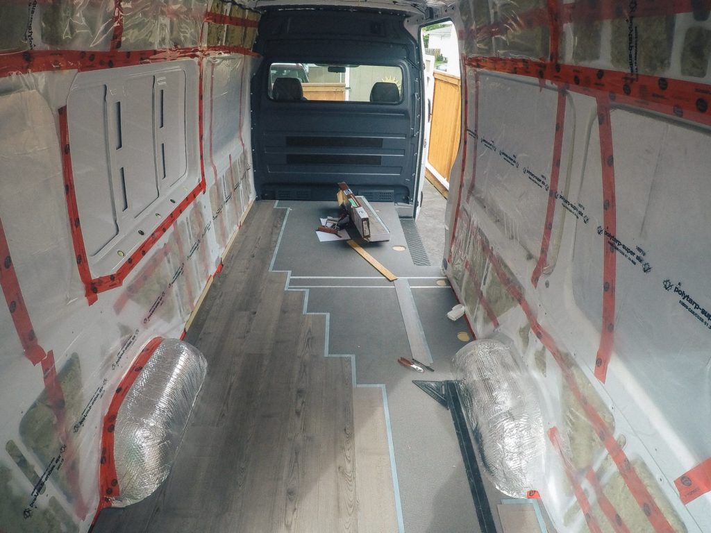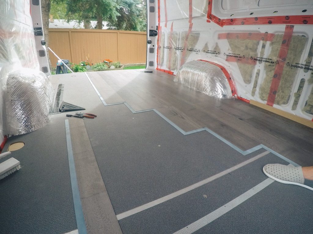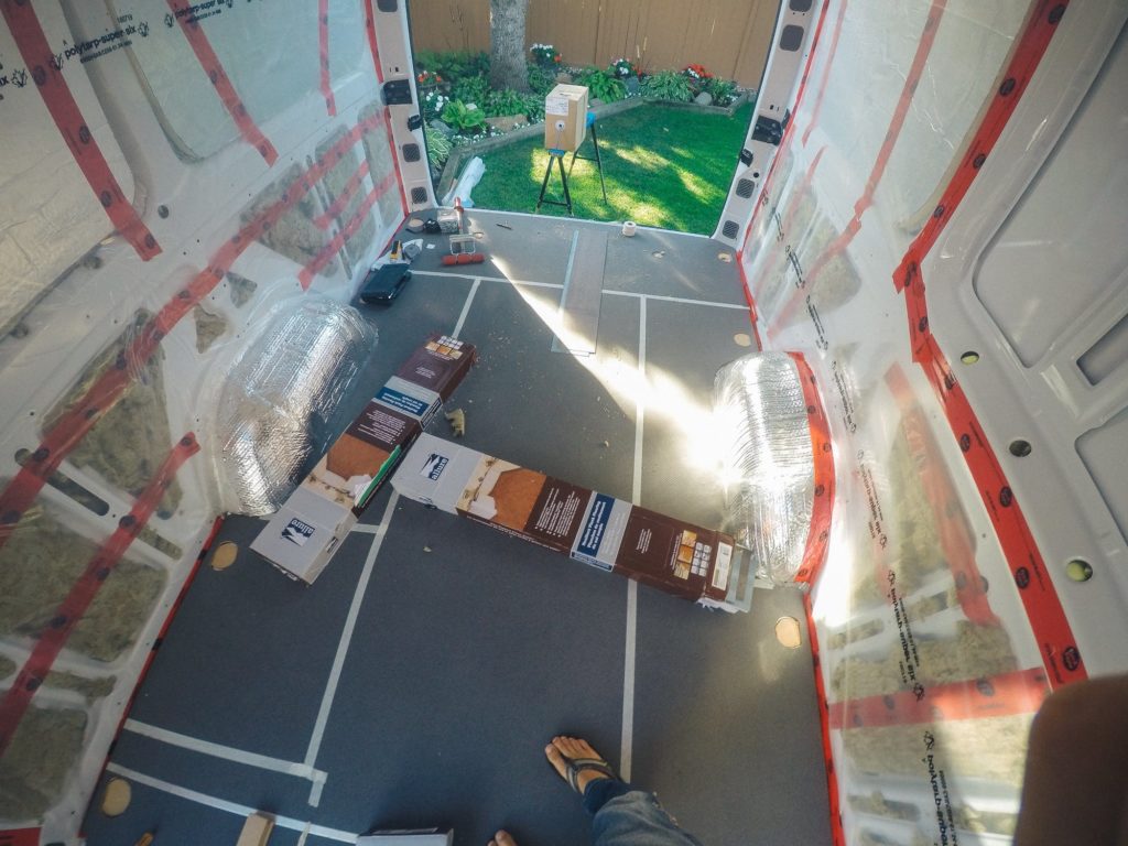 I was eager to install the flooring right after I finished insulating the van. If I could go back in time, I would have waited until the van was nearly finished before installing the floor. Reasons being, it: