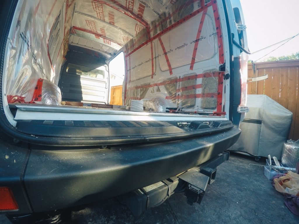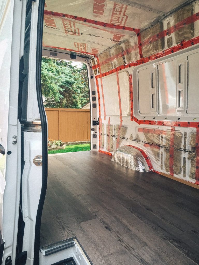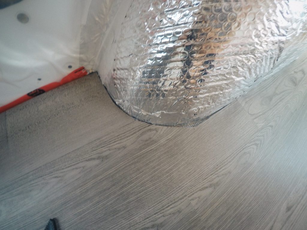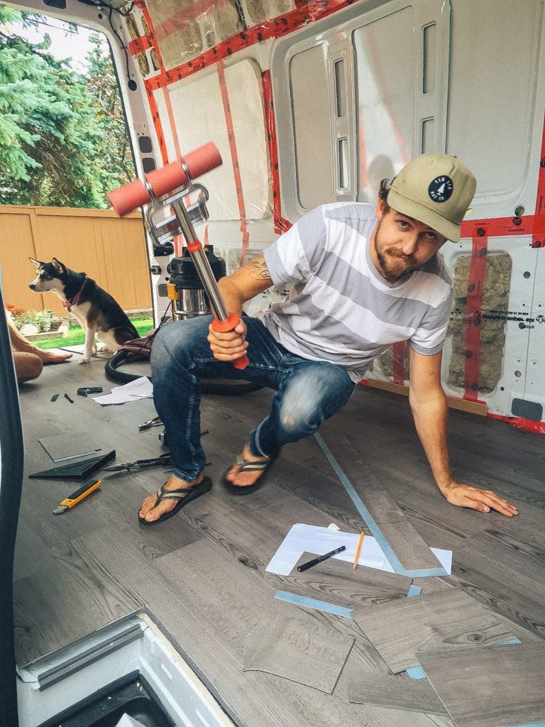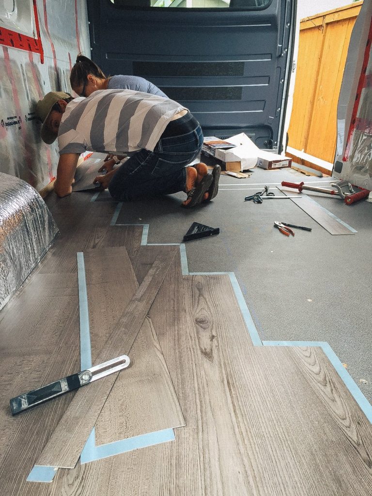 I was eager to install the flooring right after I finished insulating the van. If I could go back in time, I would have waited until the van was nearly finished before installing the floor. Reasons being, it: