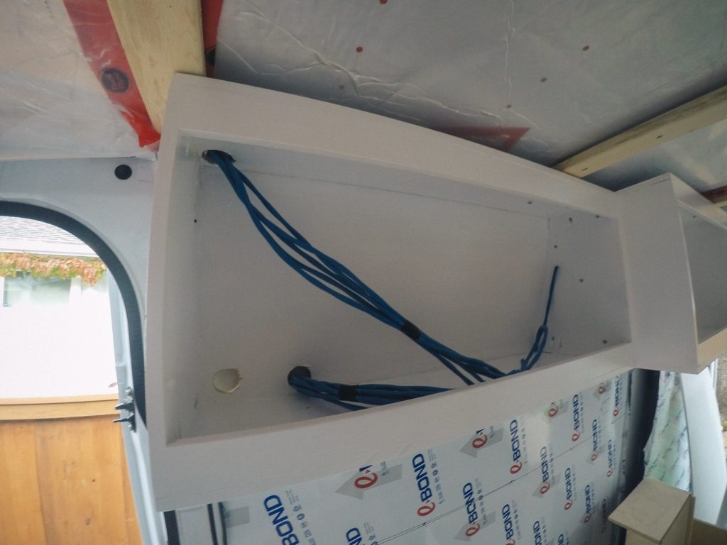 When installing these on the roof I suggest putting them as far back as you can on the sprinter van in the cavity above the rear doors. By putting the cable clam here you end up with a nice area inside the van to hide and fish the wires into whatever cabinet you are hoping to run them.