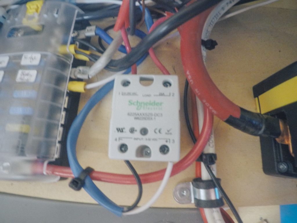 This little relay as you can see the bottom connects to the charge controller aux port and the top is placed inline with the positive wire going to the hot water heater. It’s a fairly simple install but what it does is allows you to almost trickle charge your water once the house batteries are full.
