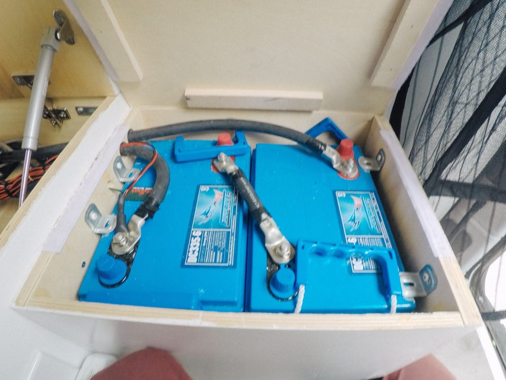 Enough to get from the battery boxes to the batteries I wasn’t able to get red 4/0 so just had to use black. The 4/0 welding cable was used to connect the batteries together and the inverter to the fuse and shunt.