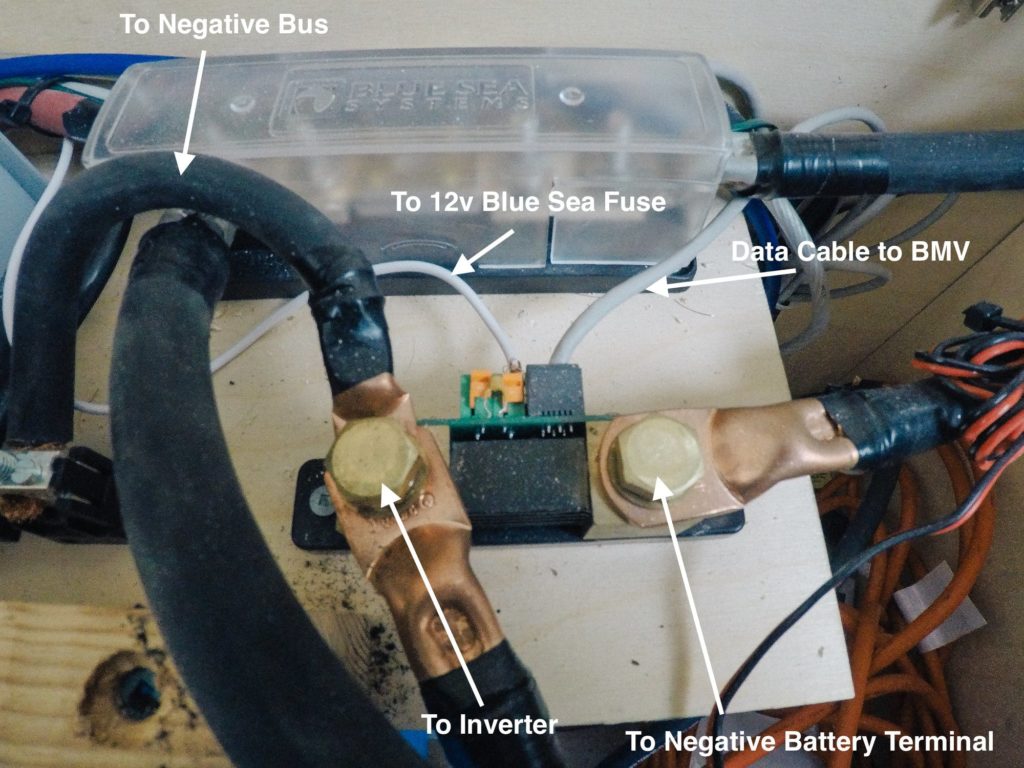 Basically the shunt is a breakpoint in the circuit and it has the ability to pull information as the electricity passes over it. On the shunt you will also need to install a small power wire which I just ran to the 12v BlueSea Fuse Panel and then the Data cable provided plugs into the shunt and the other end to the back of the BMV display.