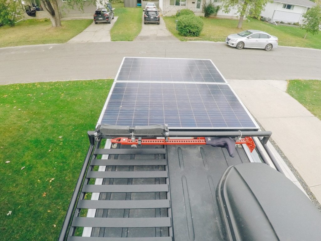 For my panels I used (2) 260W Solar Panels from HESPV giving me a total of 560W. My panels are mounted on the custom roof rack and due to the size of these selected panels I do have the ability if needed to upgrade to (2) 330W panels increasing the total solar power from 520 – 660W = 140W. So far the current panel size has been adequate and getting a larger panel has not been necessary.