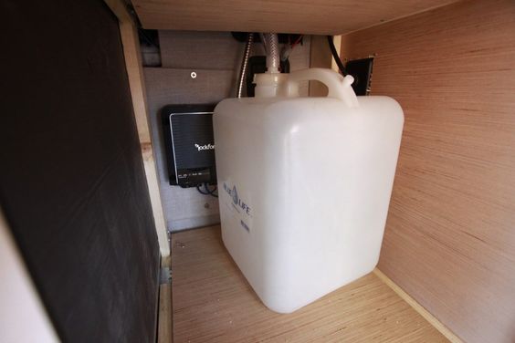 Fresh water is necessary if you want your van life to be a comfortable one. This means building a water system to. The simplest water system of all utilises gravity instead of expensive pumps and parts. Bill of The Backwards Van says “The water system in our converted FWD Promaster is absolutely faultless. A large capacity stainless steel tank mounted in the bulkhead and the taps (and the shower) are gravity fed. Best of all, the tank fills from the outside, making it easy to top up with a hose pipe and involves no drama or dragging containers in and out. We carry an underslung grey water tank which empties via a little tap by the drivers wheel. There are no pump parts to breakdown nor electricity required to run the system and we are never without water for a cup of tea!”